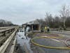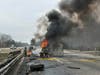 BEDMINSTER, NJ — Cleanup of a fuel spill and an overturned tractor-trailer that was on fire on Interstate 78 continues to cause issues into the evening commute in Somerset County.