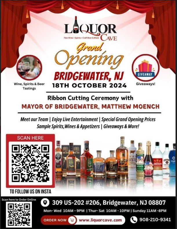 BRIDGEWATER, NJ — The newly opened Liquor Cave will host its official store opening on Friday, Oct. 18.
