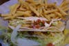 To complete my meal, I sampled Grilled Chicken Buffalitos, consisting of two soft flour tortillas with grilled chicken, lettuce, pico de gallo, a blend of cheeses and sour cream with a desert heat seasoning. The soft elastic shell of the tortillas enclosed a pocket of southwestern reminiscences, and the chicken was juicy, all accompanied by French fries.