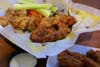 Creativity is encouraged at Buffalo Wild Wings, through the customizing opportunities provided of traditional versus boneless, and then 14 signature sauces spread on a spectrum from mild to "blazin'," as well as four dry seasonings to douse the wings in. Each batch of wings arrives with a sticker placed on the paper wrap indicating the flavor.