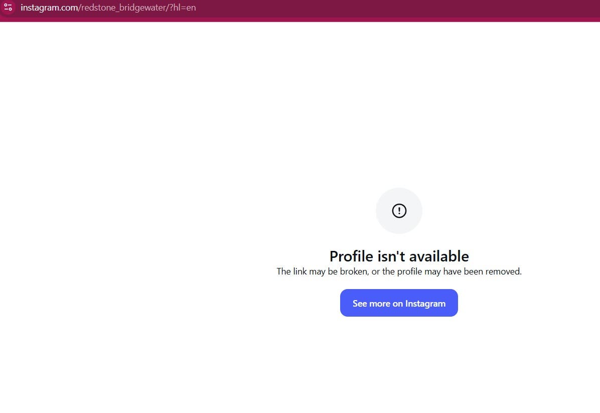 Additionally, all of the social pages for Redstone's Bridgewater location were also removed, including its instagram.com/redstone_bridgewater and facebook.com/RedstoneBridgewater.