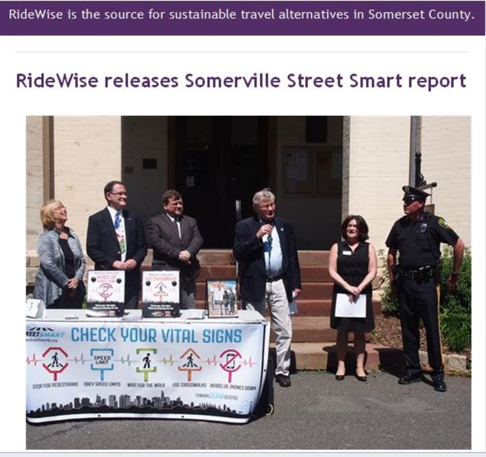 “Somerville is to be commended for taking a leadership role in keeping residents safe and joining other communities like Morristown, Summit, Flemington, Princeton and North Plainfield to conduct a Street Smart campaign. After seeing the results, it’s clear the campaign is effective in reducing dangerous behaviors among drivers, pedestrians and cyclists.” said Donna Allison, RideWise Executive Director.