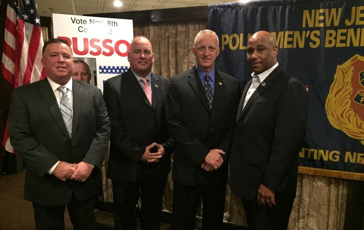 (Photo provided: From left - Ed Donnelly NJ State FMBA President, Pat Colligan NJ State PBA President, Candidate for Somerset County Sheriff Darrin Russo and NOBLE Northern New Jersey Chapter President Jiles Ship.)