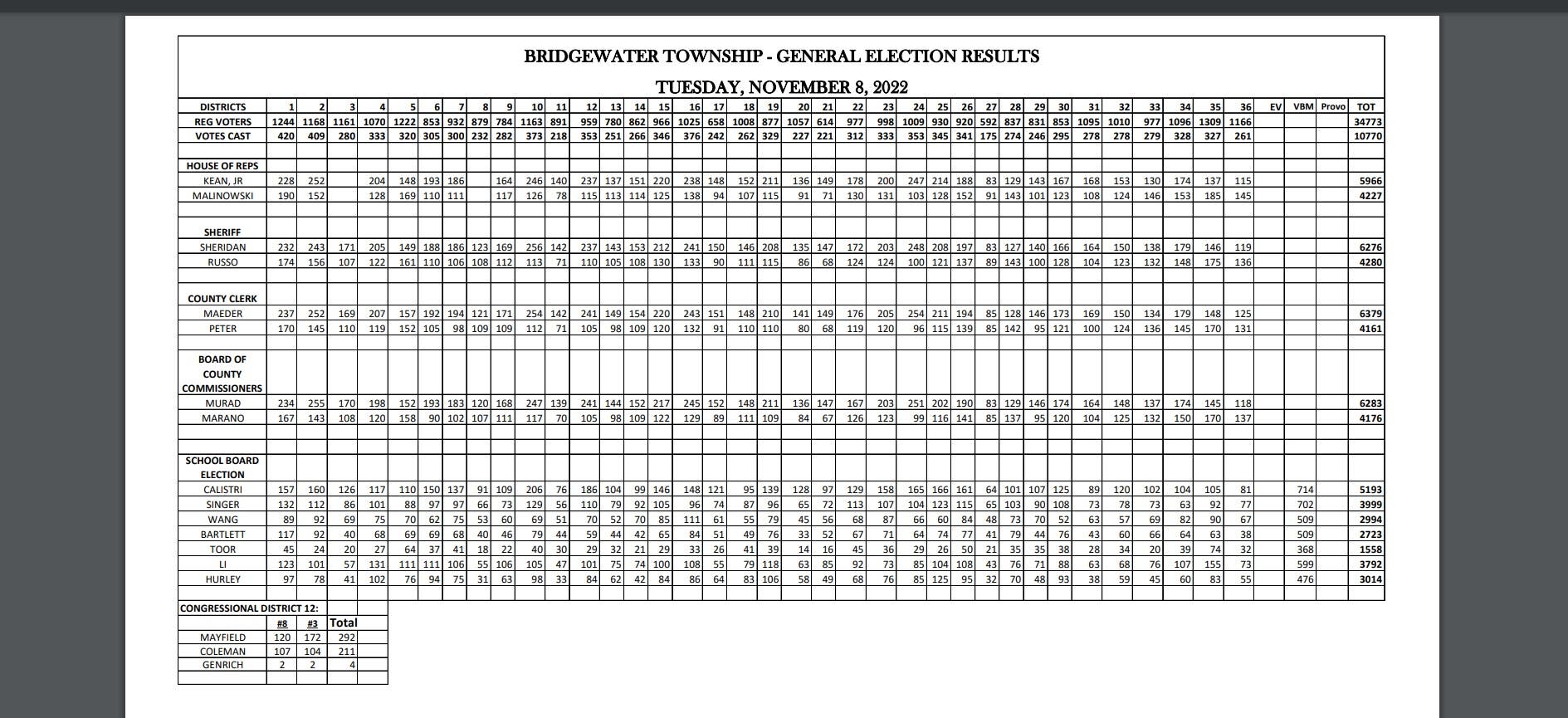 See How Bridgewater Voted In School Board, County, Congressional Races 2022