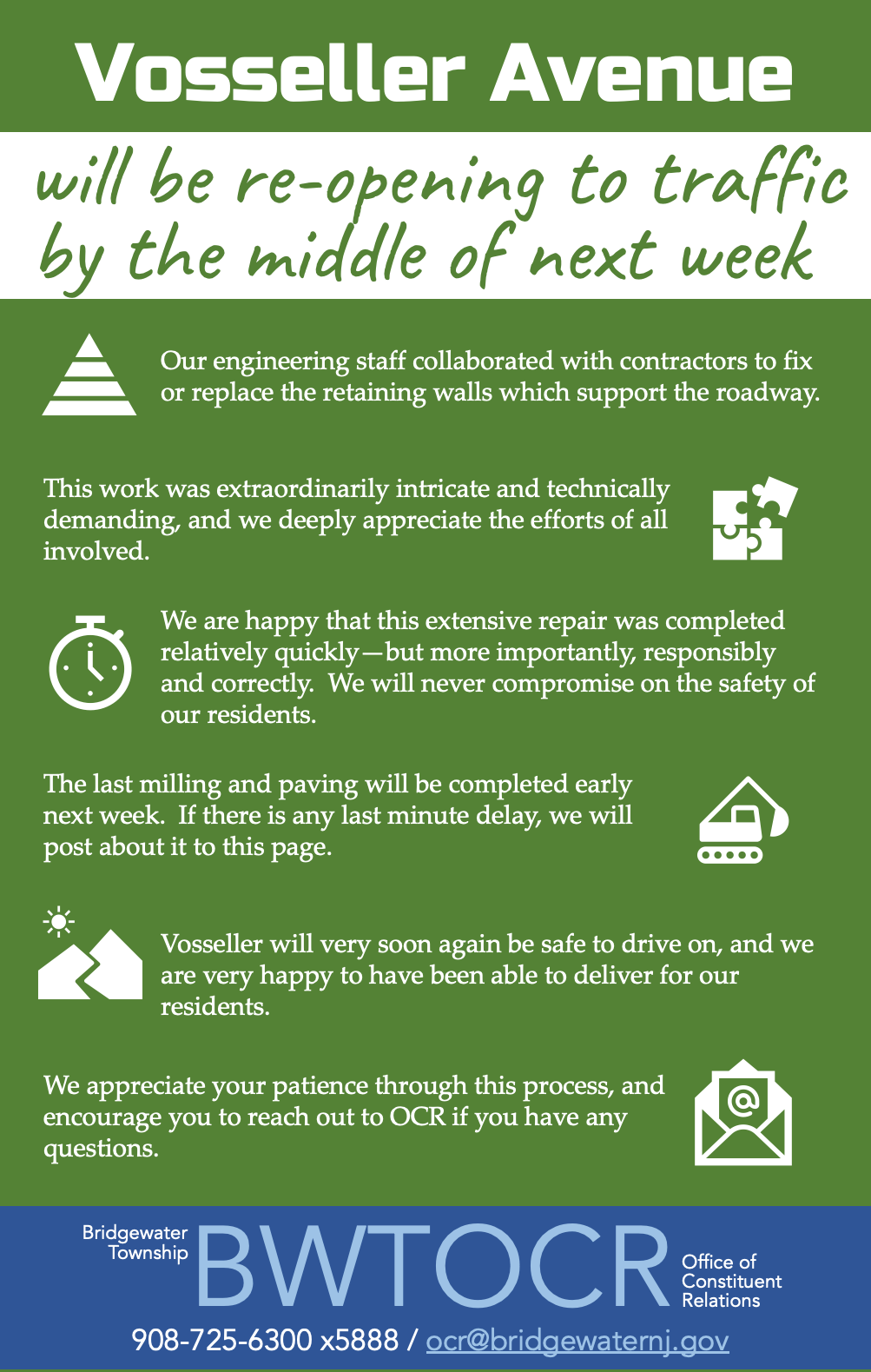 Vosseller Avenue Is Expected To Reopen Next Week In Bridgewater
