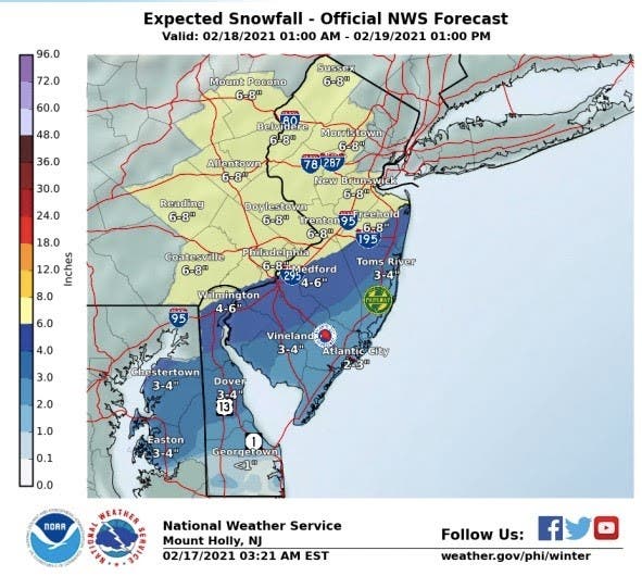 The latest updates show that more snow than expected will fall in Central Jersey, South Jersey and the Jersey Shore, although those areas could also get a significant amount of sleet, freezing rain and ice that could make a mess of roads.