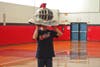 Four students auditioned for the part on Wednesday, each taking a turn sporting the helmet and showing what he or she would do to pump up the crowd at games.