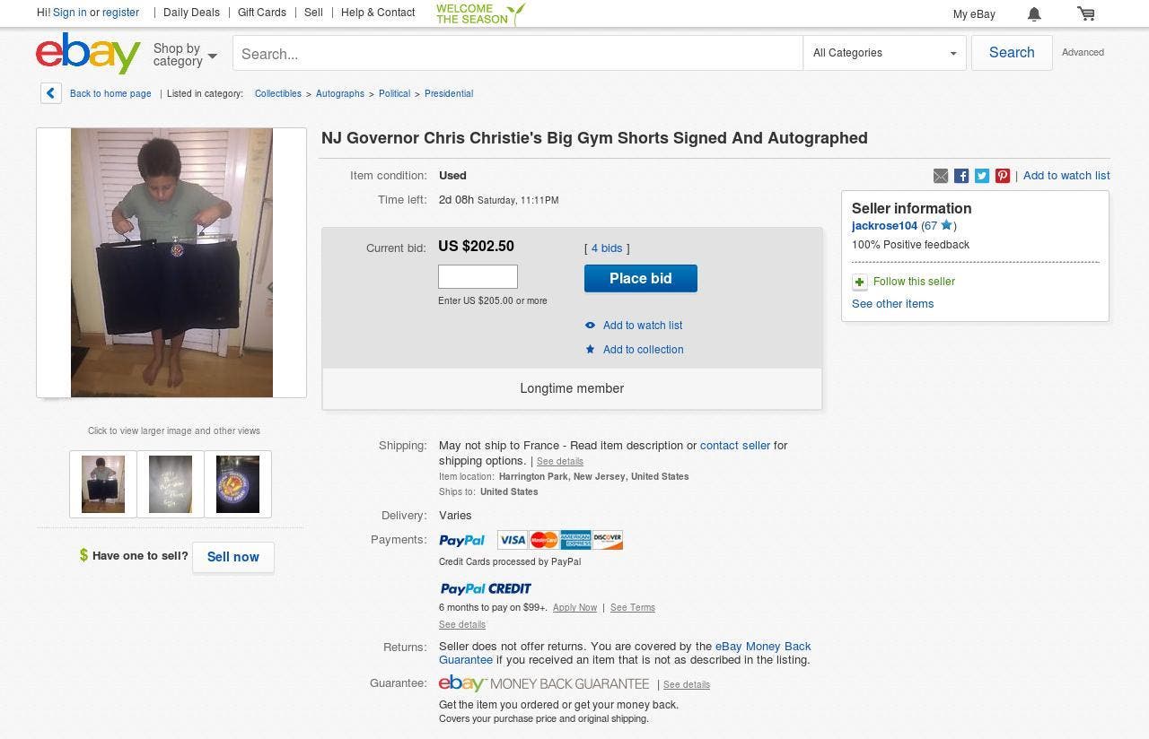 Chris Christie's 'Old Gym Shorts' For Sale On eBay