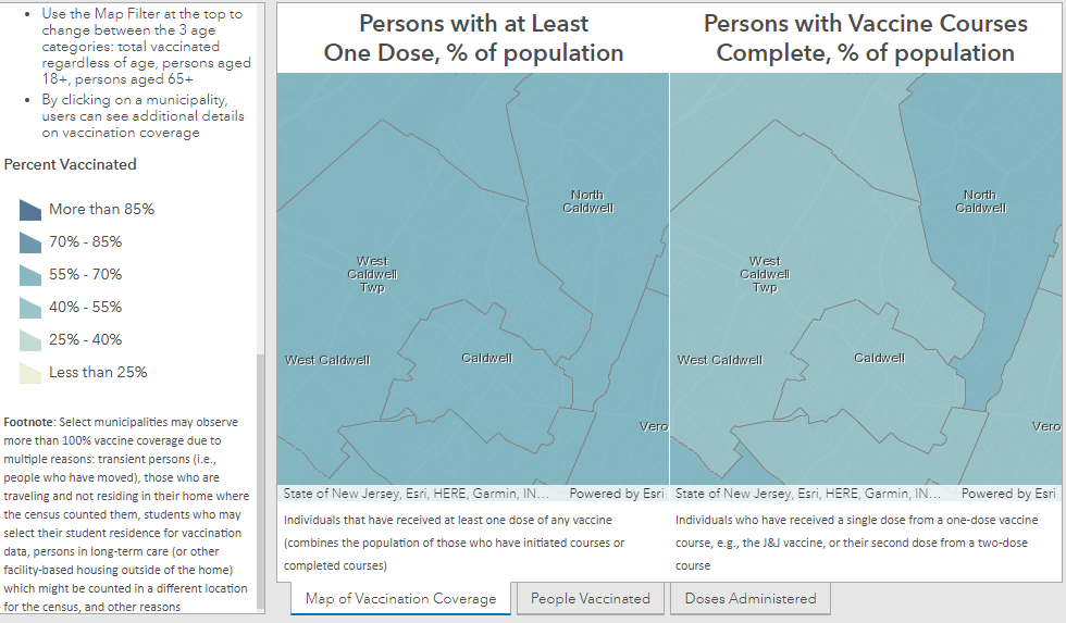 CALDWELLS, NJ — How many people have gotten a COVID-19 vaccine in Caldwell, North Caldwell and West Caldwell? (See local stats below)