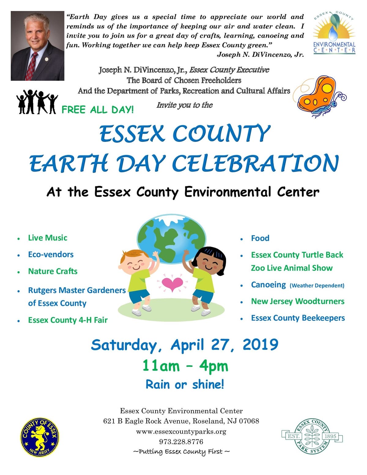 “Earth Day gives us a special time to appreciate our world and reminds us of the importance of keeping our air and water clean,” Essex County Executive Joseph DiVincenzo Jr. said. “We invite the public to come out, and learn how they can interact with nature and become better environmental stewards.”