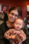 Zoey, who was a little shy from all the strangers, hid her smiling face at first on the shoulder of her mom, Laura Penny, or father Ian Penny. But Zoey opened up and ran around the room as she played with her brothers Aidan, 5, and Gavin, 3.