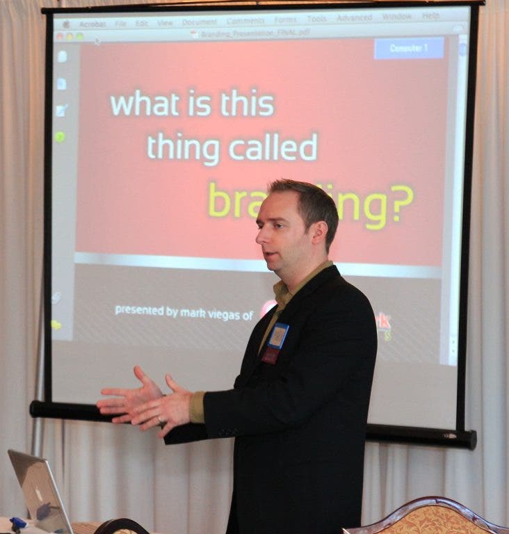 Photo credit: Mark Viegas of On the Mark Graphics, www.otmg.co making his presentation on Successful Branding methods.