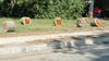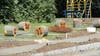 Logs from a tree cut down to make room for the sidewalk were with faces painted on them. The mouths depicted on the logs were open in what appeared to be fear.