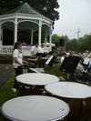 On the other side of the Gazebo, several students from the School of Rock were gathering with their instruments. Their gig was next, and they were concerned about the rain. School of Rock provides musical education for students in an interactive environment that includes live performances.