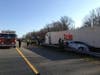 Firefighters and emergency personnel responded to the crash just before 10 a.m., not far from where a crash occurred in a snowstorm last week. The truck, pulling a Dole trailer, left the car up on two wheels on the guardrail and partially under the trailer.