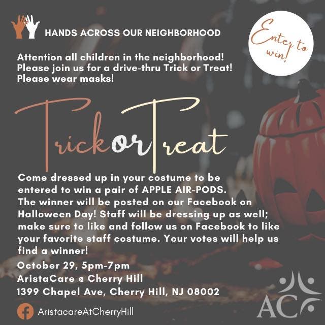 A skill nursing and long term care facility in Cherry Hill will host a drive-by trick-or-treat event for children ahead of Halloweeen.