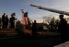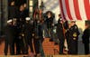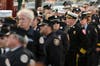 Audubon apparatus staged at the viewing was draped in black bunting, and ladder trucks from Audubon and Haddonfield flew an American flag above Healey Funeral Home as firefighters in dress uniform waited to pay their respects.