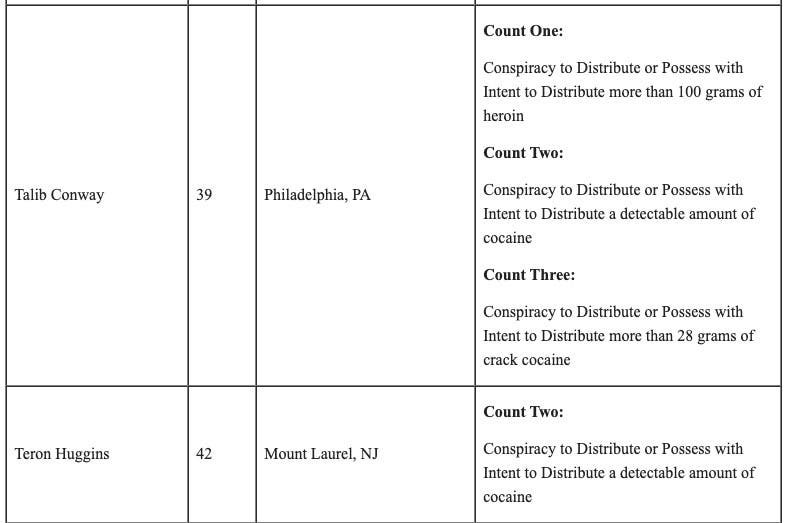 Talib Conway of Philadelphia is described in the complaint as a leading member of this organization. One defendant, Teron Huggins, is charged in both complaints.