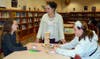 Photo Caption 2: Erica McLeod, acting CEO, Big Brothers Big Sisters (BBBS) of Burlington, Camden and Gloucester counties, speaks with Cordelia Love of Somerdale, a Highland High School student and BBBS mentor (left), and Olivia McDaniel, 11, of Blackwood, a sixth-grade student at the Charles W. Lewis Middle School on Dec. 4 during the BBBS school-based mentoring program.