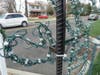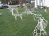 Most of the decorations he makes by bending wires and adding the lights. Some of the items are even trash-picked and reworked for his extravagant display. He even bent wire to say Merry Christmas in lights on his garage door. And on the roof is an obligatory plastic Santa with reindeer.