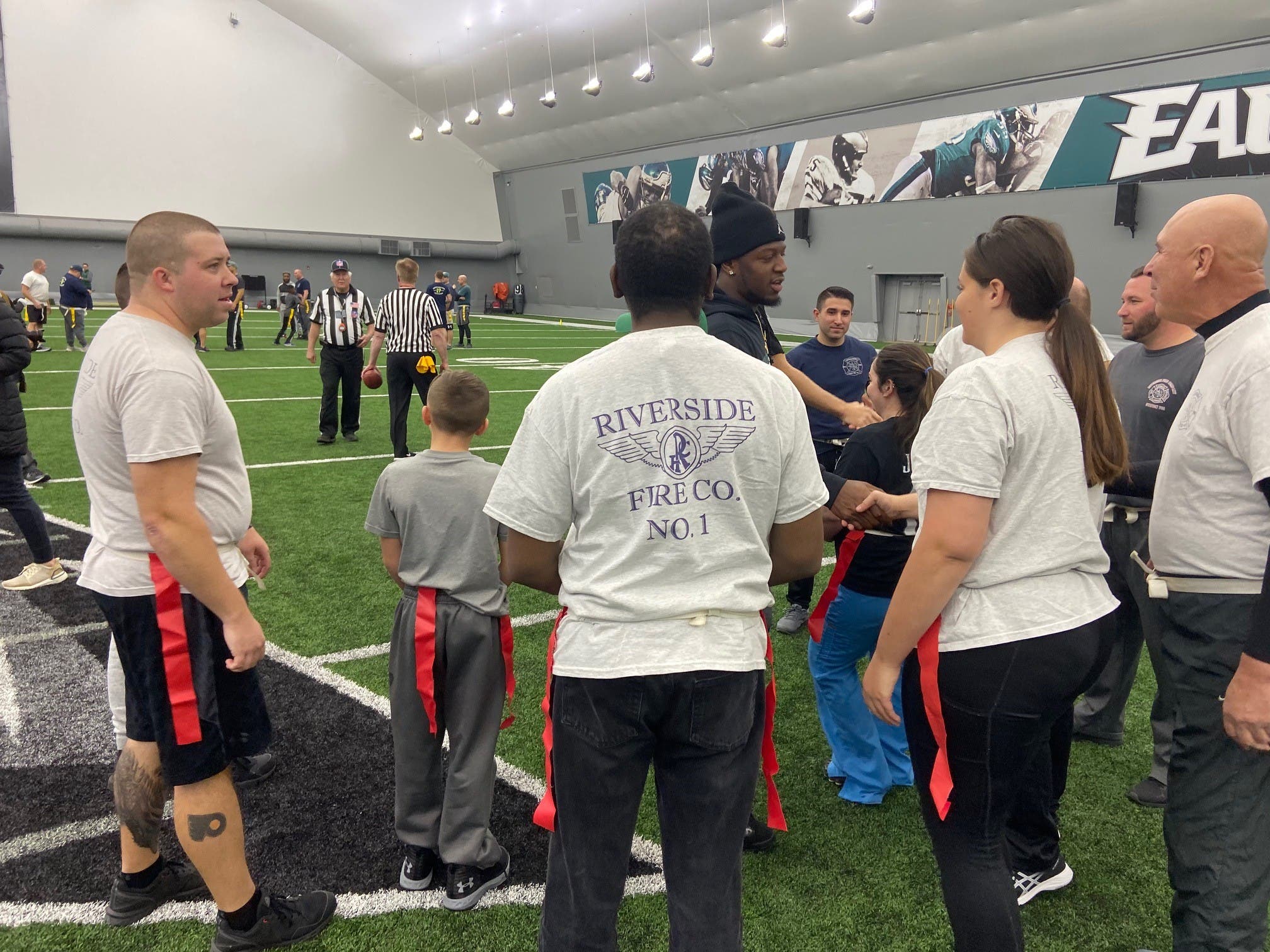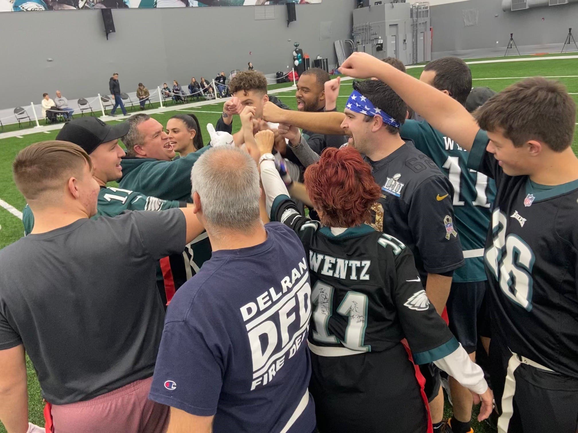 Delran firefighters were among 40 local first responders who played in a flag football game presented by the Eagles this week.