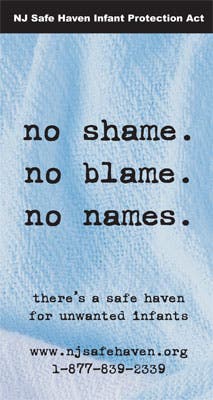 Texas was the first state to pass a law permitting a parent to give up an infant anonymously, in 1998. The law came to New Jersey in 2000.