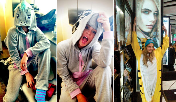 So how did they cross over from obscure Japanese fashion subculture and festival attire to having actual allowed-to-vote adults feeling comfortable walking down the street masquerading as a lion? Why are lambs literally dressing as mutton? Well, the animal playsuits got the celeb stamp of approval in a big way. Lily Allen appeared in public dressed as a dinosaur and the Pink Panther. Model Cara Delevingne is quite the aficionado (she's been a panda, tiger and monkey) to the point where she even joked on Instagram that she should start her own onesie line.