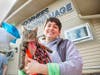 Photo 4: Geena Toro, assistant cat manager, VAO, holds adoptable cat Nutella during VAO’s grand opening and leash-cutting event.
