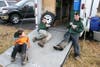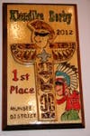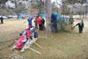 Twenty Boy Scouts from Clark’s Boy Scout Troop 145 formed three Boy Scout patrols – Black Hawks, Coyotes, and Timberwolves – and acted as huskies pulling specially designed homemade sleds around a field course marked by stations named for Alaskan gold rush towns or cities such as Golovin, Nenana, Shaktoolic, Koyuk, Ruby, Kaltag, Nome and Nulato.