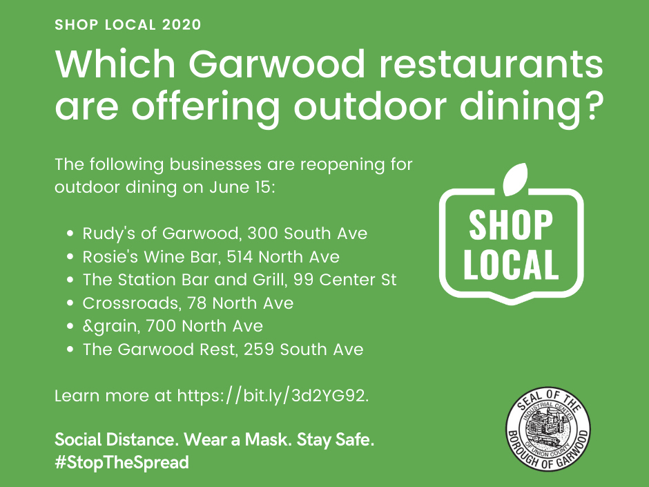 "We are excited that our restaurants in Garwood will begin outdoor seating," said Mayor Sara Todisco. "We gave each business with a food handler's license the paperwork needed to get a permit here in Garwood."