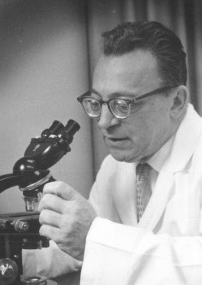 Photo courtesy George F. Smith Library of the Health Sciences/Rutgers University; Oscar Auerbach painstakingly examined microscopic changes in lung tissue to prove that smoking causes lung cancer.
