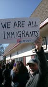 "I am here to show my love and faith," DuBreuil told Patch. "The action being taken by our President goes against every teaching of our creator. My church is a church of immigrants and I am here for them because they are working today so I am working for them."