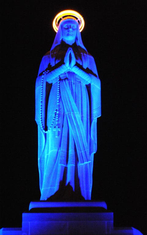 In recognition of World Autism Awareness Day, Our Lady of Lourdes Medical Center lit the hospital’s iconic 30-foot, 15-ton statue of the Blessed Mother blue on April 2.