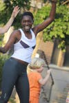 "I've never taken a Zumba class at all, much less an outdoor class," said Roszell before the event. "But the people I work with are always doing it, and I wanted to try it out. And especially because this class was free. And I live close by—I could've walked here."