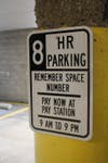 Signage in the garage states parking is available for public use every Monday through Sunday, from 9 a.m. to 9 p.m. For the first three hours in the eight-hour limit, it costs 25¢ per half hour to park. A cost of 15¢ per half hour applies for the next five hours.