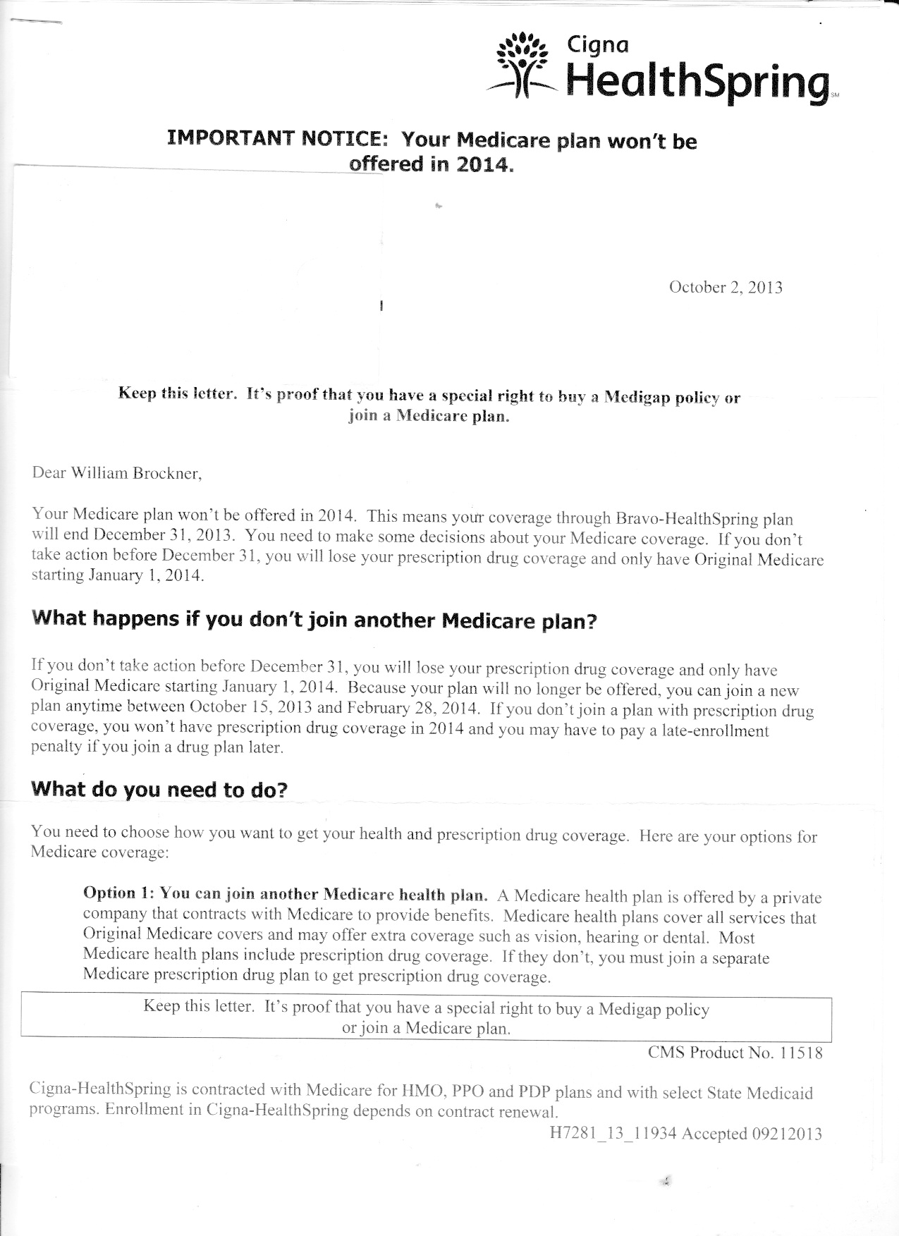 I got my insurance cancellation letter 10-2-2013.