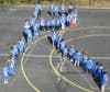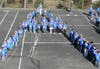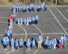 Guided only by white-tape lines laid onto the blacktop, teachers and students found their designated places and stood at attention. The entire school was ready.