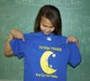 The letters were spelled-out in a sea of blue, thanks to fifth-grader Katrina Adamczyk-DeLarge. The 11-year-old Tatem student won the school's Read Across America T-Shirt Design Contest—and Kindergartener Riley Stacey came up with the shirt's slogan, Tatem Tigers Read Past Their Bedtime. Katrina's sketch was chosen from hundreds of her fellow classmates' designs. The prize? Every single Tatem student and staff member wore identical shirts Wednesday, all of them bearing her design.