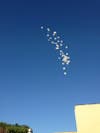 In the third image, white balloons are released into the night sky to symbolize sympathy, support and love.
