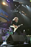 A relatively quick set change brought on Def Leppard, who headlined the Rock of Ages tour, which derived its name from one of the band's most popular songs and is subsequently now the name of both a Broadway musical and a movie featuring music from the 70s, 80s and 90s. The stage - much more elaborate than Poison's set with a backdrop of movie screens and near seizure-inducing lighting effects - initially featured a giant British flag. There was no mistaking who the headliners were on this tour, and after more than 30 years, Def Leppard undoubtedly earned the spotlight. In facr, July 11 marked guitarist Phil Collen's 30th year in the band, and just to make true fans feel even older, it's been 25 years since the album "Hysteria" was released. Yeah, ponder that while you count your gray hairs.