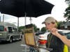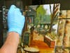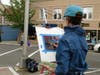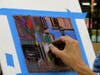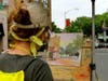 The artsists set up their easels on sidewalks downtown as well as near parks and in front of some homes and businesses. The artists worked while pedestrians watch them transform local landmarks into works of art.