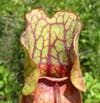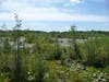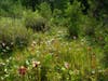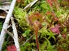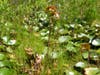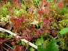 But once you get out onto the open bog, the place is magical. The bog is actually a floating mat of vegetation on top of deep saturated muck and every step is a balance between sinking and standing. The ground is covered by water filled sphagnum moss (squeeze a handful and see how much water it holds) and all kinds of cool plants abound. There are three species of carniverous plants: sundews, pitcher plants and bladderworts, all that get their nutrients primarily from eating insects. A close look at the sticky hairs on the leaves of the sundews will often reveal tiny trapped insects slowly being dissolved by the plant. In some places sundews are so abundant their red leaves cover the ground. And there are literally hundreds if not thousands of pitcher plants in the bog with their beautiful red-streaked water filled tubular leaves just waiting for an insect to make the mistake of entering them. The leaves have downward pointing hairs that prevent the insects from climbing out and they ultimately drown in the pool of water in the leaf where they are then dissolved by the plant for food. Carefully cut open any leaf and look at the bottom for the remains of insects, there are usually plenty that were unfortunate. The small yellow flowers of bladderwort are beautiful but the roots have small "bladders" on them that trap tiny insects and other invertebrates. And as if these botanical treasures aren't enough, there is Atlantic White Cedar, water lilies, Awned meadow beauty, and much much more.