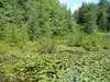 The uniqueness of Helmetta Bog led the United States Environmental Protection Agency to classify it as an EPA Priority Wetland. Helmetta Bog is actually a huge wetland system and large parts of it were old cranberry bogs before the turn of the last century. The extreme northern edge of these wetlands, just west of Hemetta Boulevard, is in East Brunswick and is well worth the effort to explore. But exploring the bog is only for the intrepid, with no trails and deep, nearly bottomless muck. One wrong step and waist deep muck is a guarantee. The best way to access the bog is to park at the small dirt pull-off just before the road crosses the swamp and hike west into the woods along the trail. About 200 feet from the road, bushwhack south until you find the wooded swampy edge of the bog. At this point there are two options. One way is to walk along the edge in either direction until you find an old and not easily recognized path into the bog (there are some old wooden timbers in the wetter areas), or if you cant seem to find the old path, to carefully pick your way through the wooded swamp trying to stay on hummocks and fallen logs until you pop out into the open bog. The wooded swamp is only a narrow band of about 50 feet, so it isn't too far to get to the bog. One wrong step is sure to add some time as you try to find something to grab onto to extracate your leg from the sucking muck. Evergreen Atlantic White Cedar is abundant in this swamp forest and creates a dark shady almost surreal feel to the forest even on the sunniest days.
