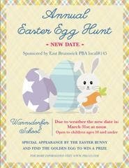 The Easter egg hunt was supposed to take place this Sunday, March 25, and was open to all East Brunswick children. However, the event has been rescheduled for Saturday, March 31 at noon. Same location at the Warnsdorfer School.