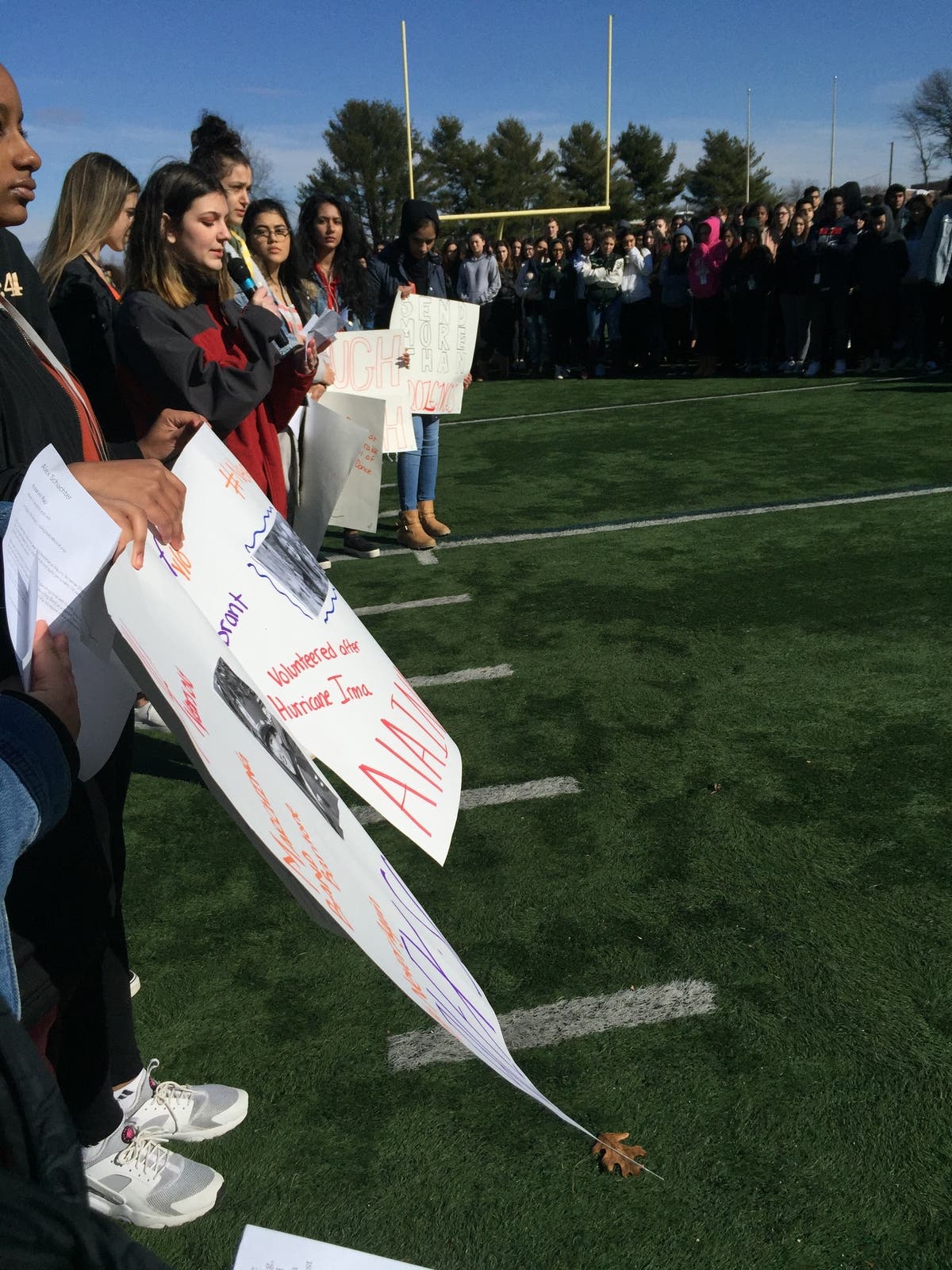 "Speeches were censored as well," Kohli said. "The process of the day was to bring in posters and speeches to our administrator's office in order for them to sign off on them. The administrators held onto them and we were told we’d receive them back when we met up on the football field during the walkout ... As I was given my speech back, nothing on mine was edited, but I saw other students arguing with administrators because whole paragraphs and sections of their speeches were entirely crossed out. One student was so upset he began to cry."
