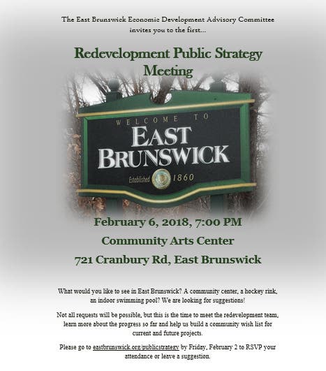 East Brunswick Public Redevelopment Meeting Feb. 6