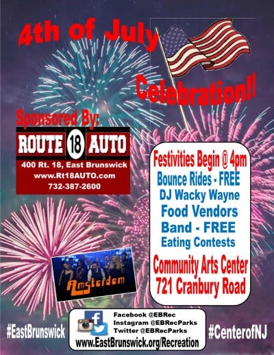 The event will go from 4-10 p.m. on Thursday, July 4 at the East Brunswick Community Arts Center, 721 Cranbury Road, East Brunswick, NJ (rain date July 5)