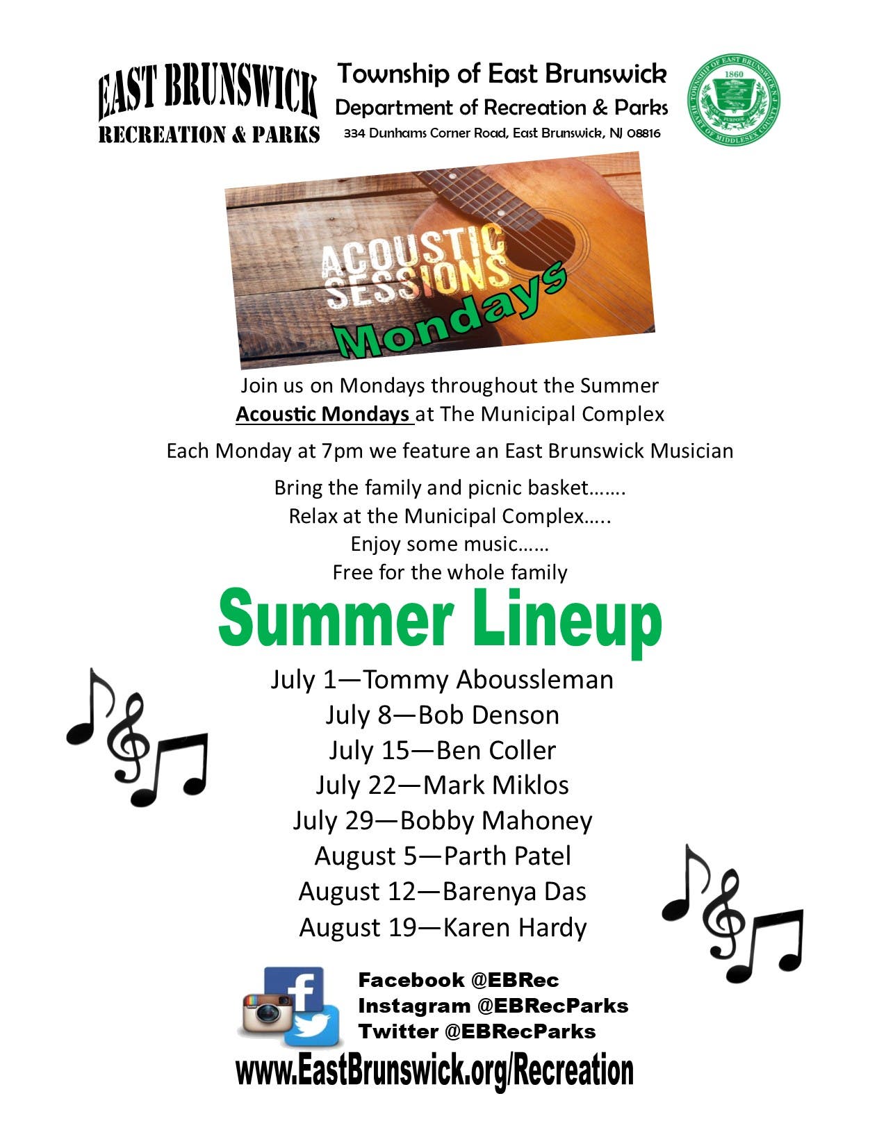 East Brunswick's July/August Twp. Event Schedule