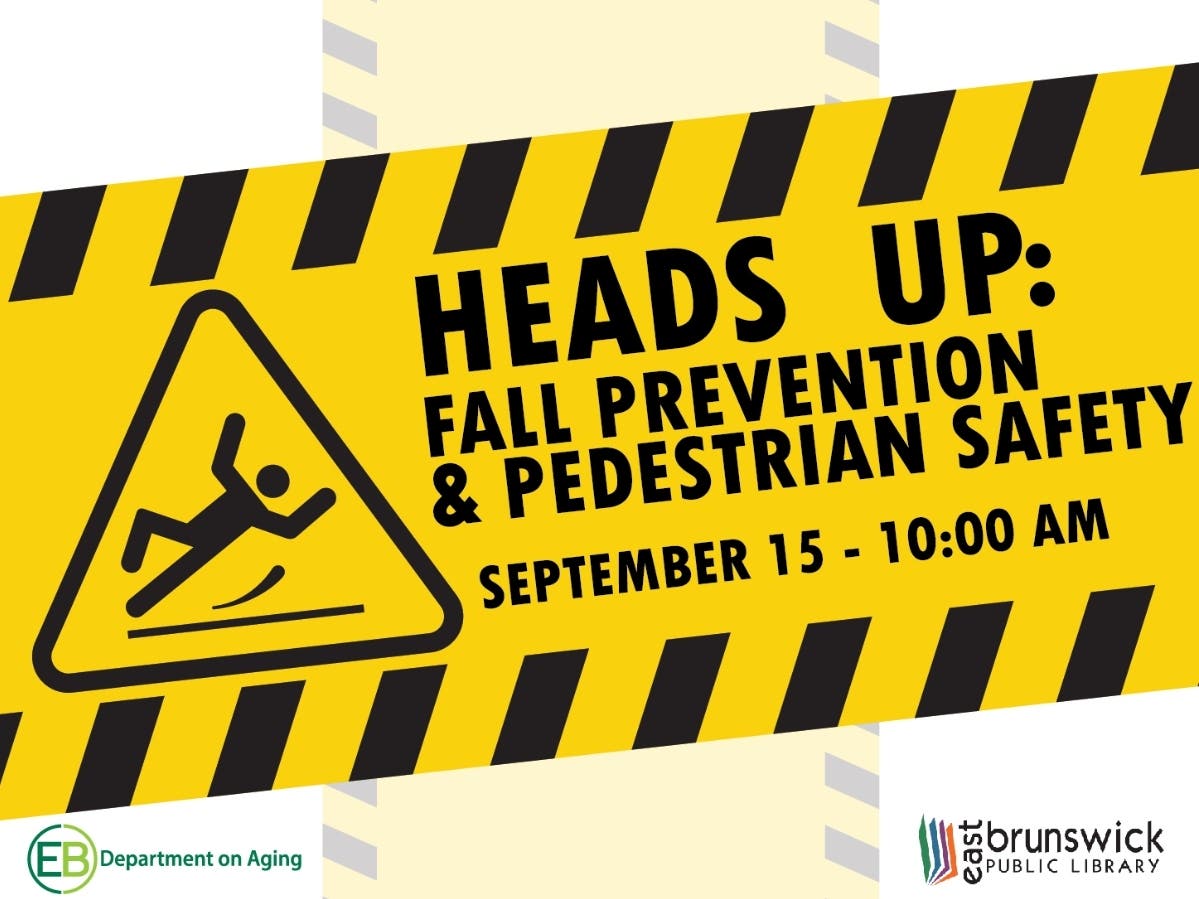 East Brunswick Public Library and the East Brunswick Department on Aging team up to host the program “Heads-Up: Fall Prevention & Pedestrian Safety” on Thursday, September 15 at 10:00 am in the library.