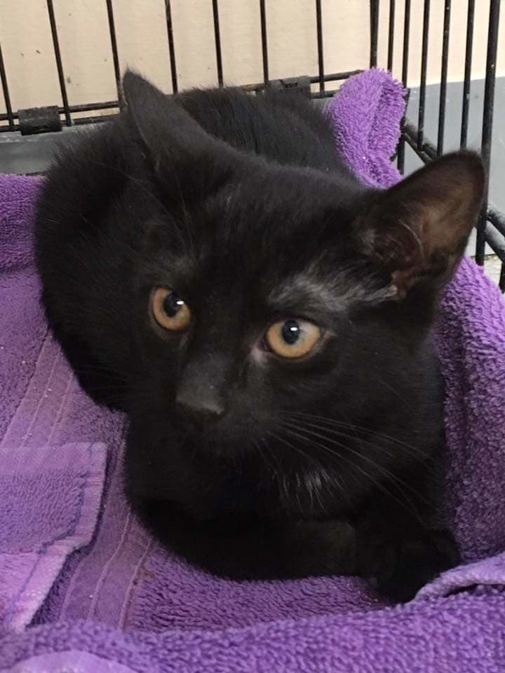 The man told a shelter volunteer he wanted to look at kittens. While the volunteer obliged, the woman quietly went into another room and removed a baby black cat from a large cat condo cage that housed four kittens total.